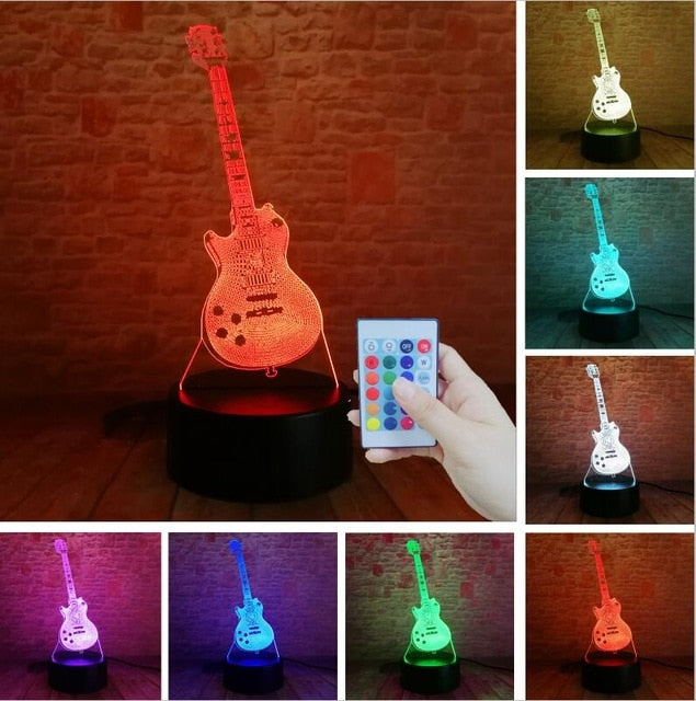 3D Electric Music Guitar Illusion Lamp LED 7 Color Changing